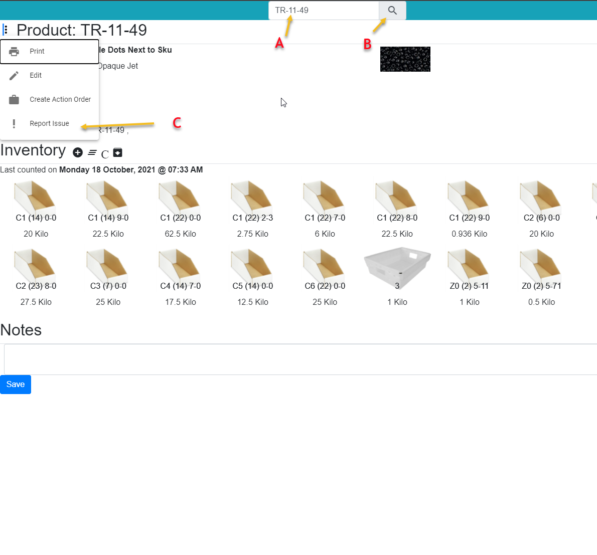 F: Notes, once you press the plus button notes will be added, these notes can be internal(agents only) or they can be sent to the WH staff.